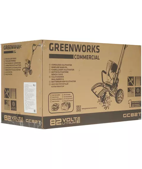 Культиватор Greenworks GC82T электрический, 82 В, ширина обработки 30 см, глубина обработки 20 см, 4 лапы, вес 8.5 кг [2801107]