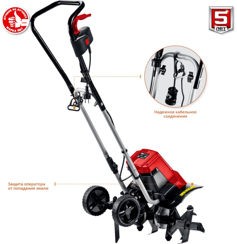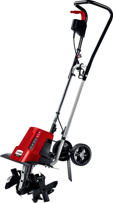 - Манёвренный культиватор с синхронным двигателем мощностью 1800 Вт используется для рыхления и культивации почвы на небольшом участках, парниках и теплицах. Оснащен металлическими фрезами с шириной захвата 40 см и обрабатывает почву на глубину до 20 см.