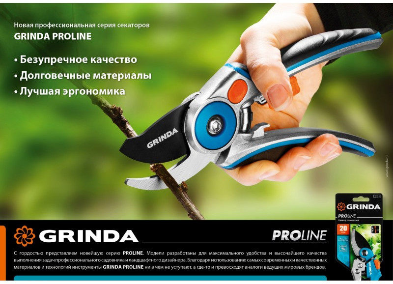 Профессиональные секаторы GRINDA PRO-LINE характеризуются самыми надёжными и современными материалами. Пользуясь этими секаторами вы обеспечите себе удовольствие и комфорт при работах в саду.