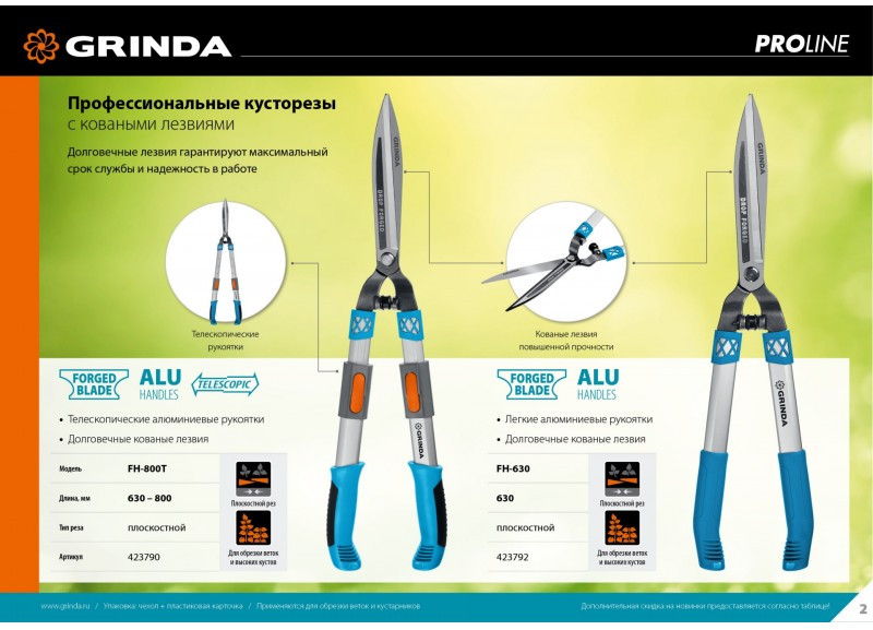Профессиональные кусторезы GRINDA PRO-LINE изготовлены из самых надёжных материалов. Обладают длительным сроком службы, легко режут.