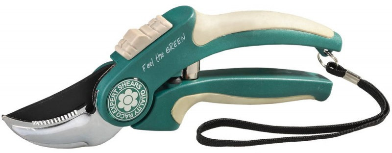 - Секатор снабжен верхним фиксатором и ремешком для ношения на руке.