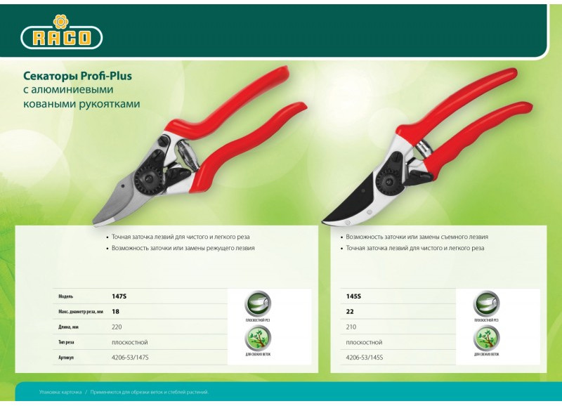 Усиленные секаторы RACO «Profi Plus» в традиционном и привлекательном дизайне для садоводов-профессионалов. Лезвия инструментов изготовлены из высококачественной нержавеющей стали, что гарантирует превосходный результат и длительный срок службы.