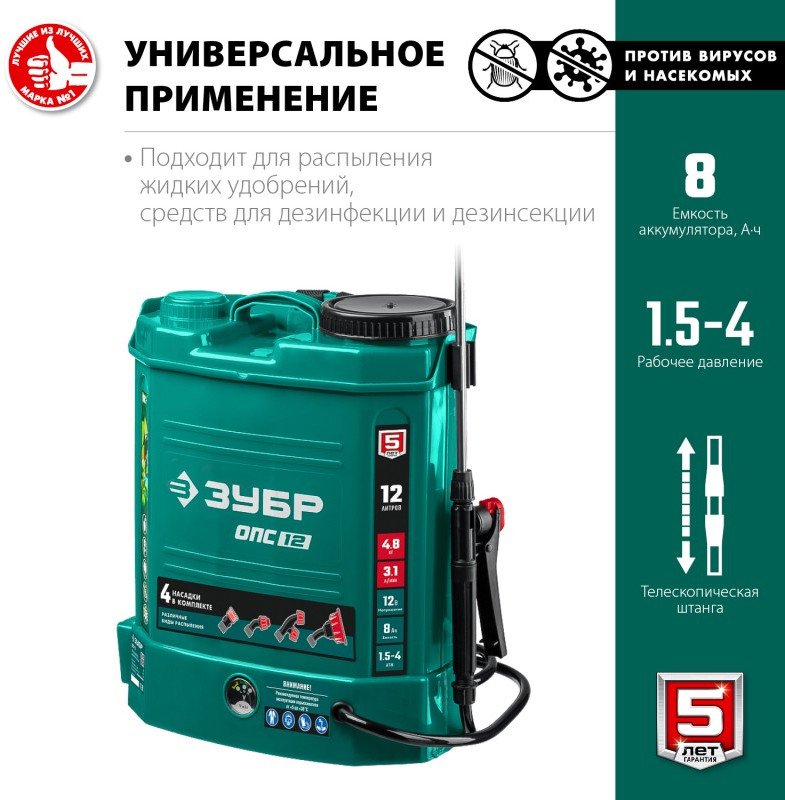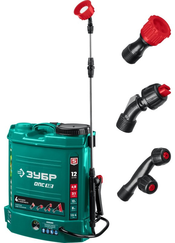 Опрыскиватель аккумуляторный Зубр ОПС-12 12 л бак, 12В, 8Ач