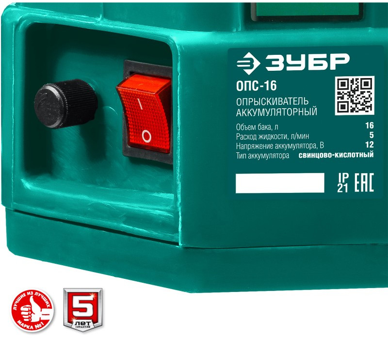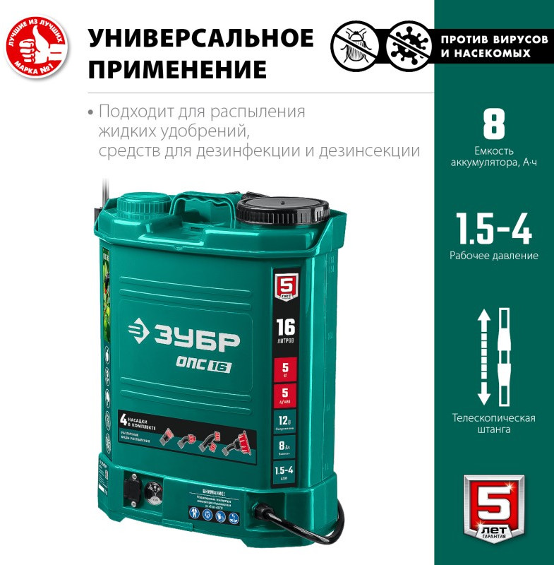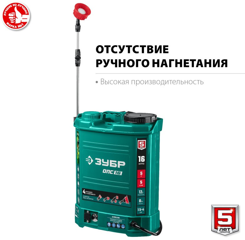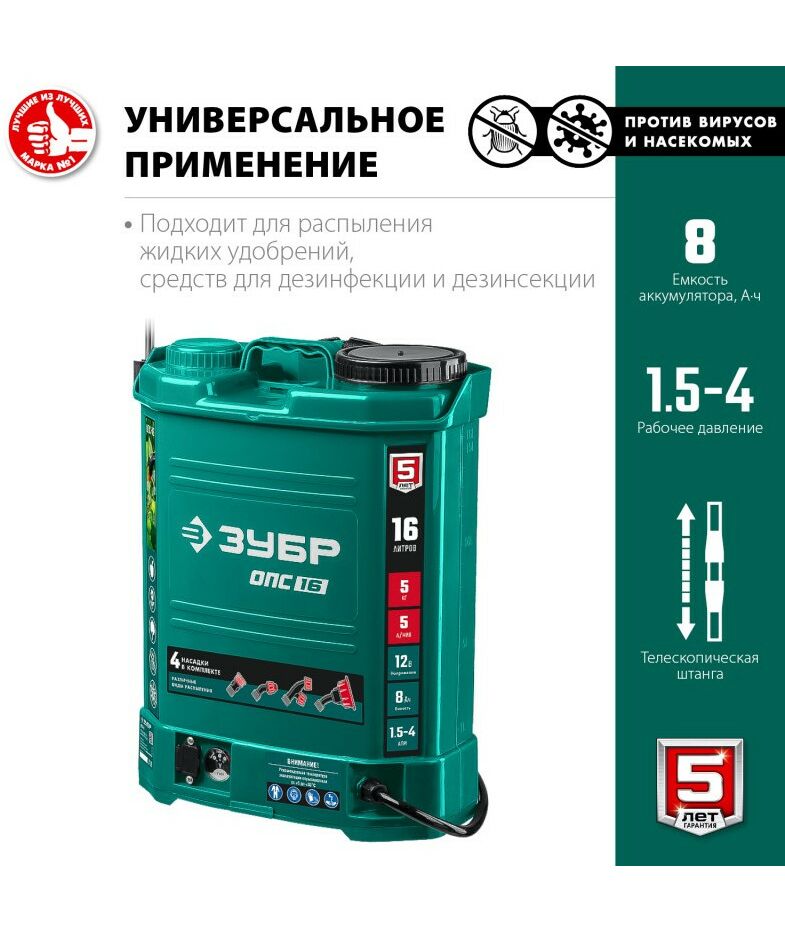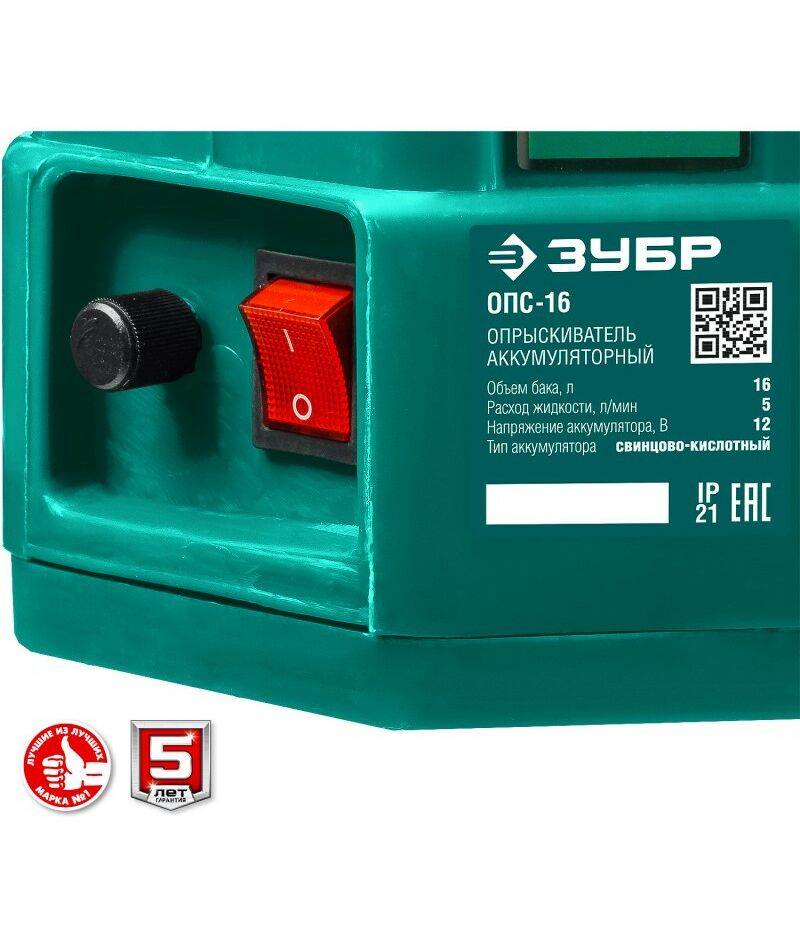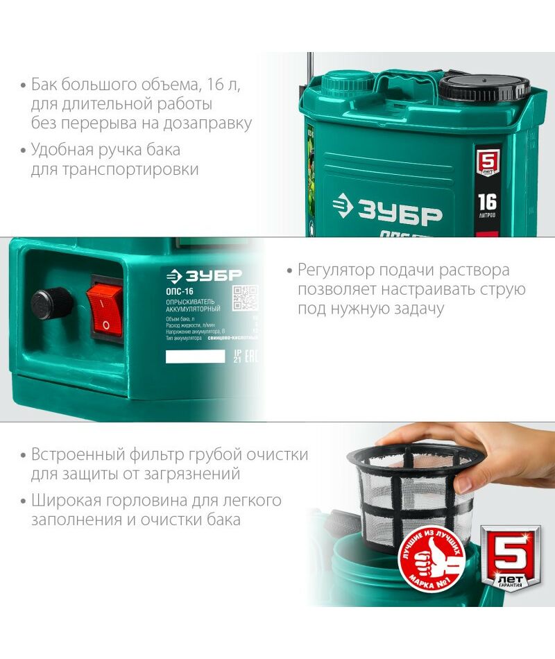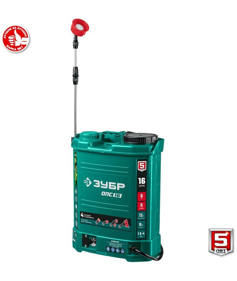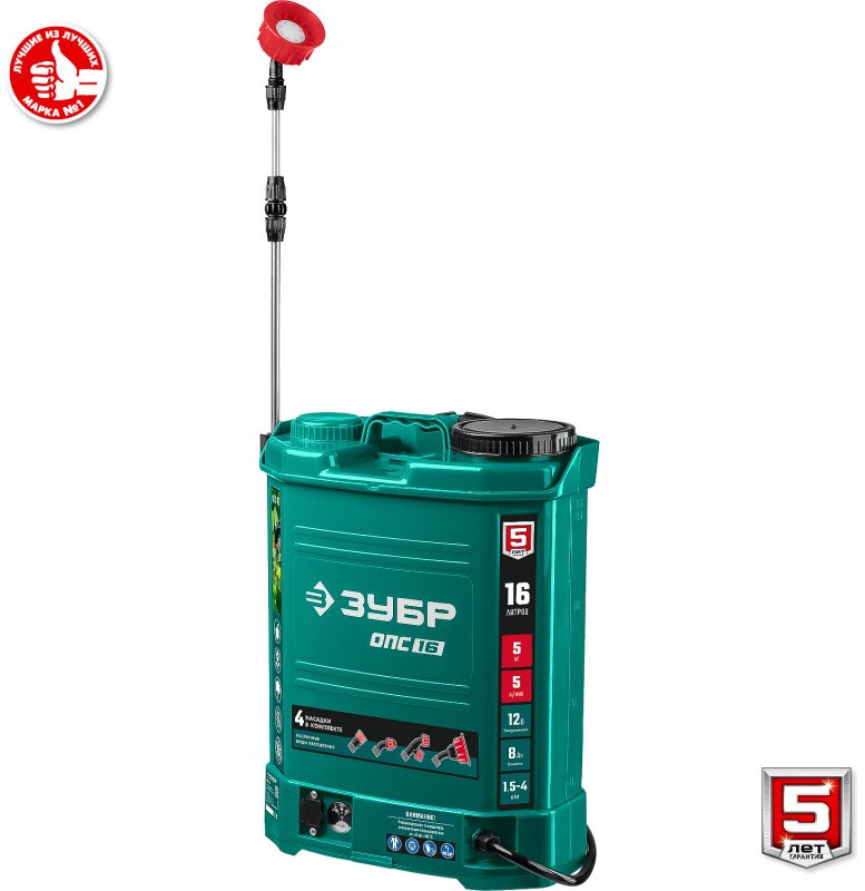 Опрыскиватель аккумуляторный Зубр ОПС-16 16 л бак, 12В, 8Ач