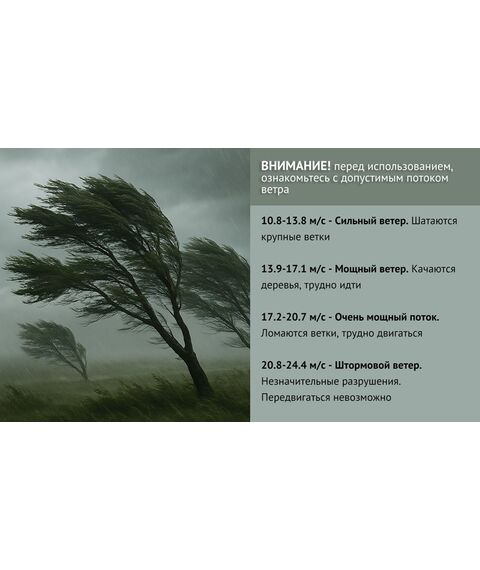 Обратите внимание! Отпугиватель птиц "SITITEK ХИЩНИК" эффективен ТОЛЬКО при наличии ветра. Если на улице наблюдается абсолютный штиль (скорость ветра ниже 3 м/с), полет "птицы" может быть нестабильным или отсутствовать — это не является неисправностью.