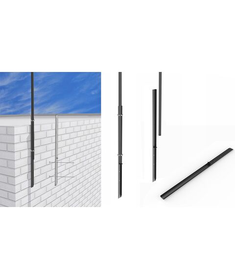 Телескопический флагшток длиной 4.5, 6 или 7 м с металлическим держателем. В комплекте поставляется прочный гибкий шест, длина которого регулируется в зависимости от условий установки. Также предусмотрен металлический держатель с отверстиями, позволяющий закрепить отпугиватель на стене, заборе, дереве или же установить в землю.