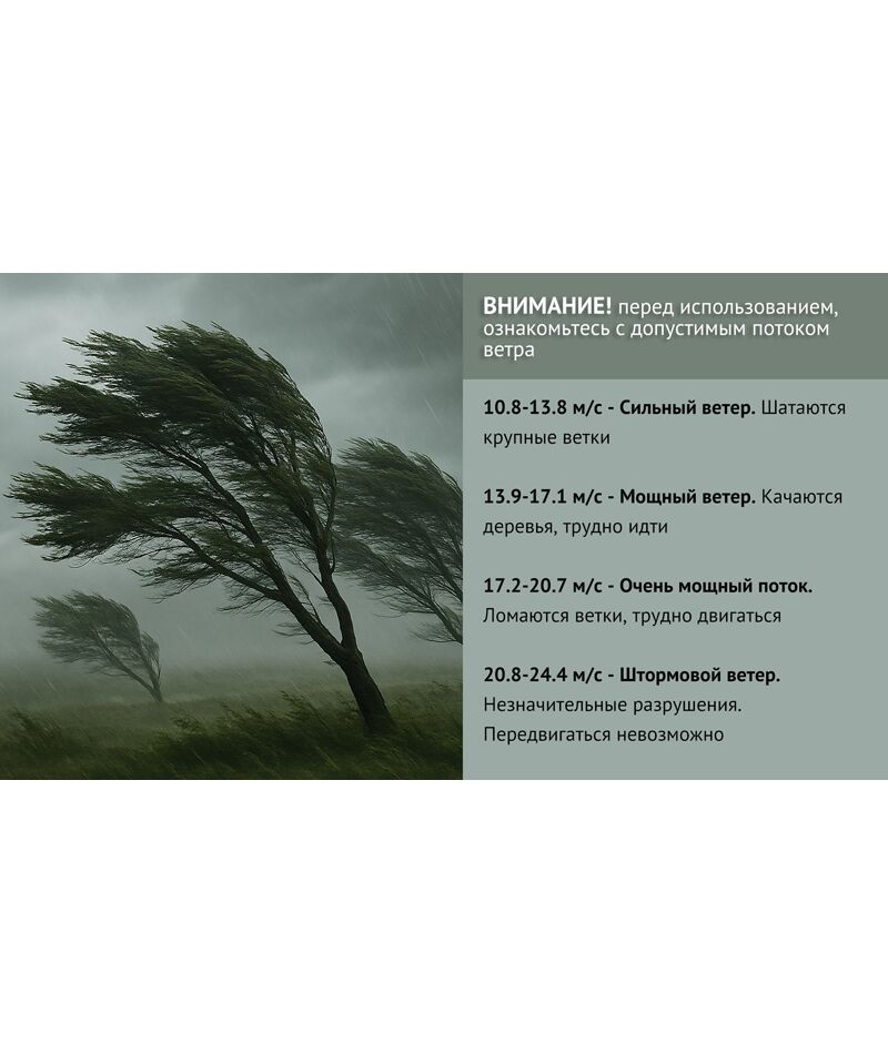 | Рекомендуемая скорость ветра | От 3 до 20 м/с |