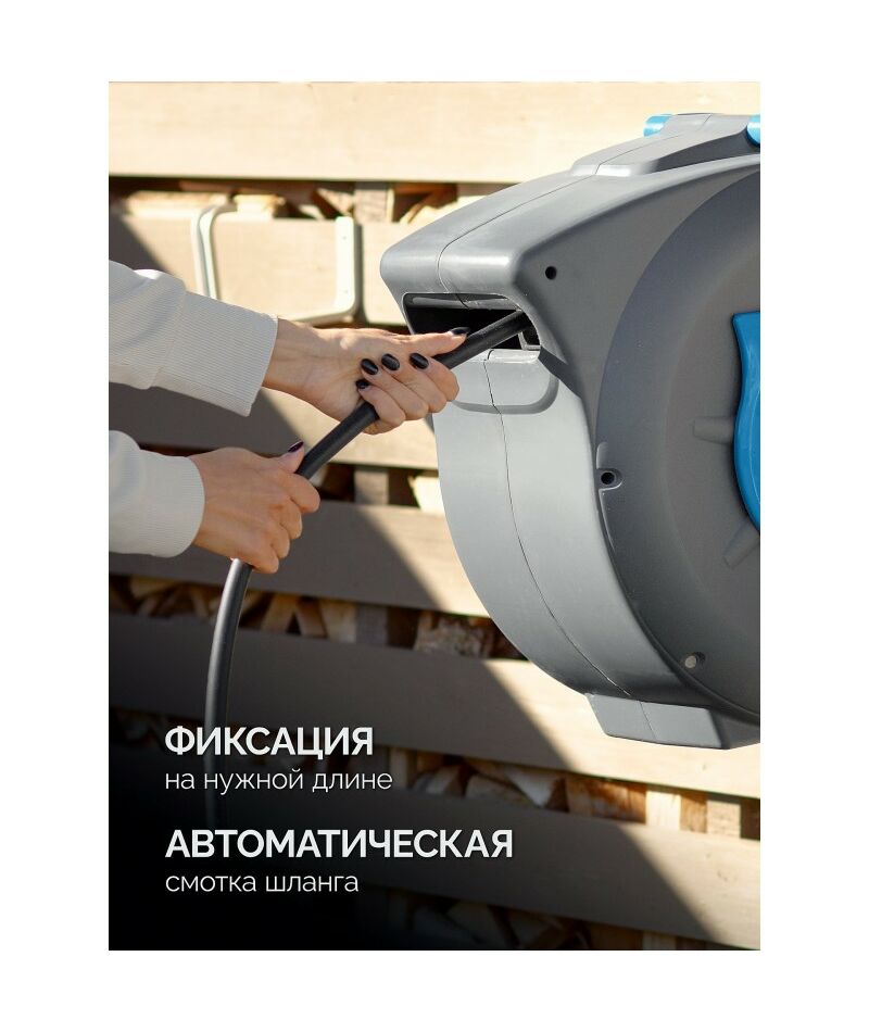 Поливочный набор с автоматической катушкой для шланга GRINDA обеспечивают удобство хранения и транспортировки поливочной системы. Удобство при поливе. Инерционный механизм позволяе быстро убрать шланг без спутывания. Крепление к стене на поворотный кронштейн позволяет поливать более удобным способом. Специально разработанные системы соединения и направляющих предохраняют шланг от перегибов и перекручивания, продлевая тем самым срок его службы и сохраняя первоначальные свойства.