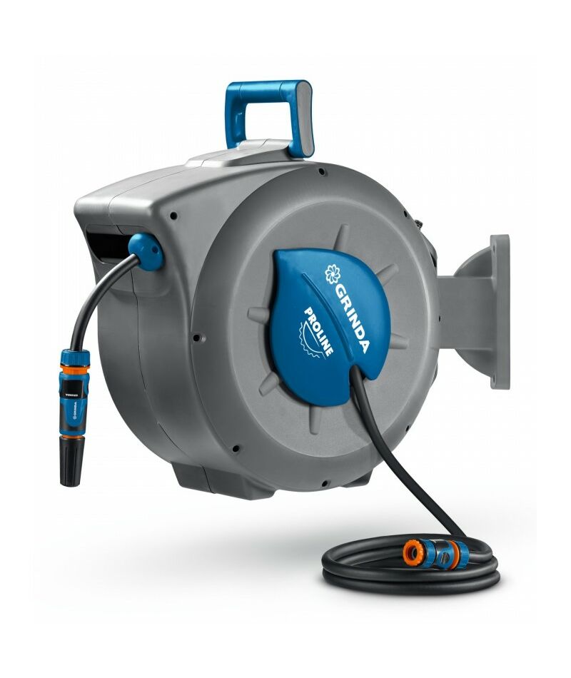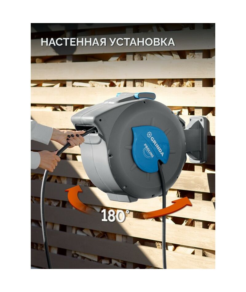 Поливочный набор 4 предмета GRINDA HRA-30 шланг 30м x 1/2", на поворотном кронштейне настенная, катушка автоматическая со шлангом ProLine [428471]