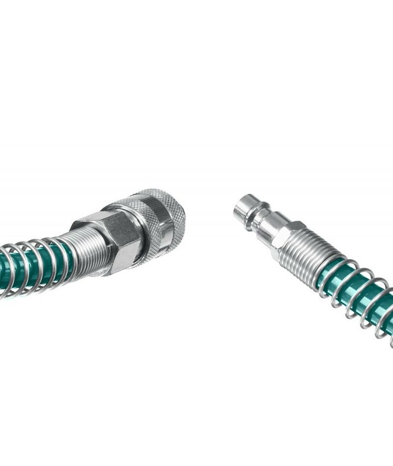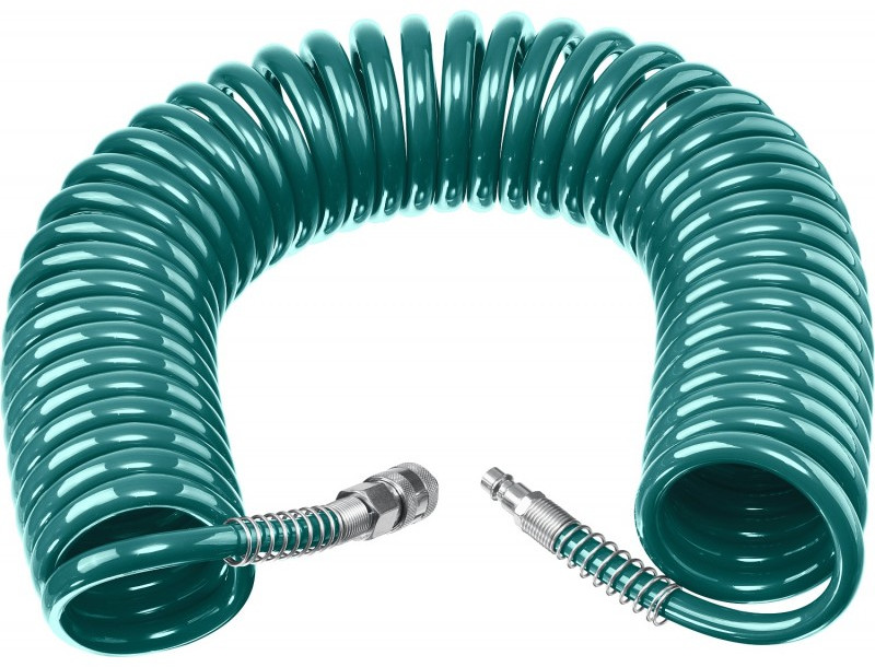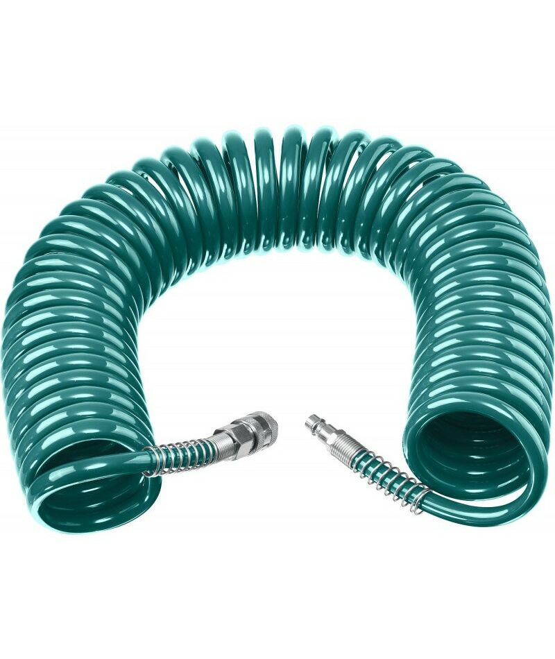 Воздушный спиральный шланг с фитингами рапид KRAFTOOL 15 м 8х12 мм, 15 бар [06590-15]
