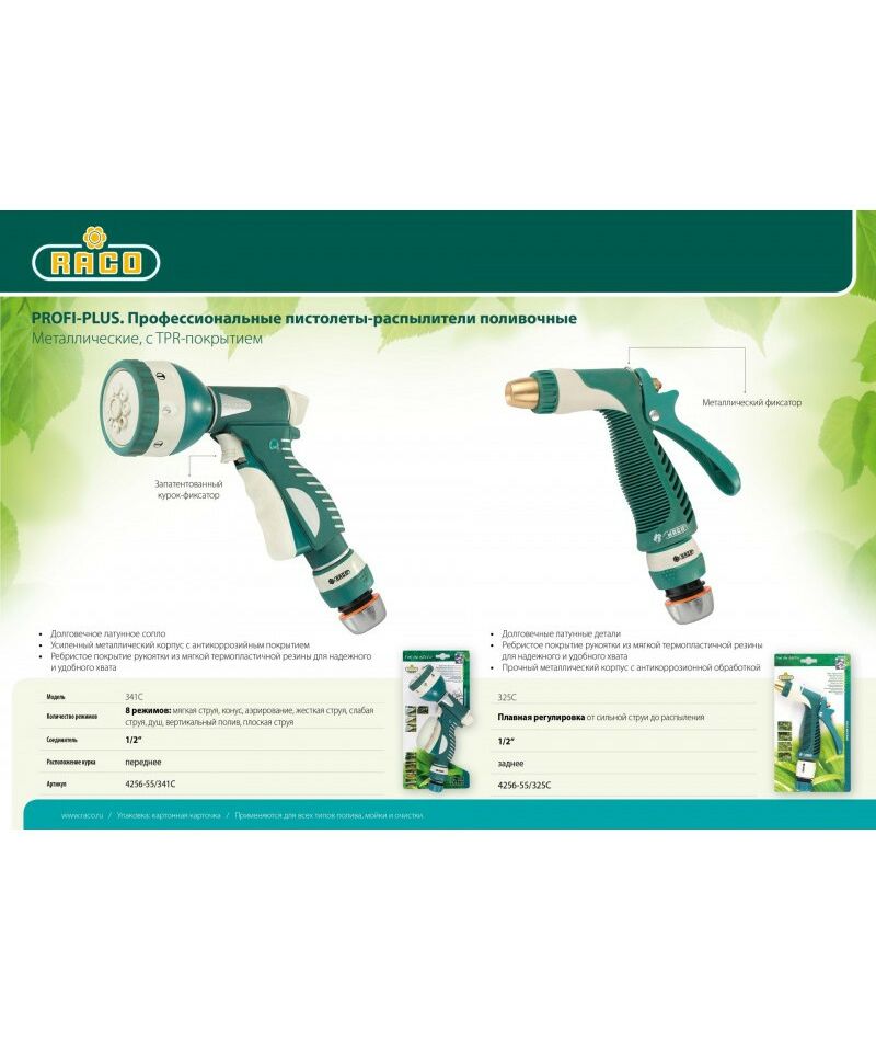 - Поливочные пистолеты-распылители RACO Profi Plus это продукт объединения новейших технологий с современным дизайном, конечным результатом которого являются инструменты класса "люкс". Обладают наивысшим качеством, самым длительным сроком службы и уровнем комфорта в использовании.