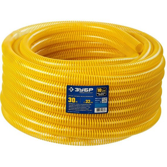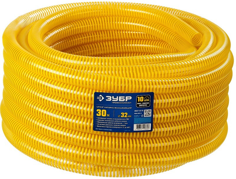 Шланг напорно-всасывающий со спиралью ПВХ Зубр 32мм х 30м 10 атм [40327-32-30]
