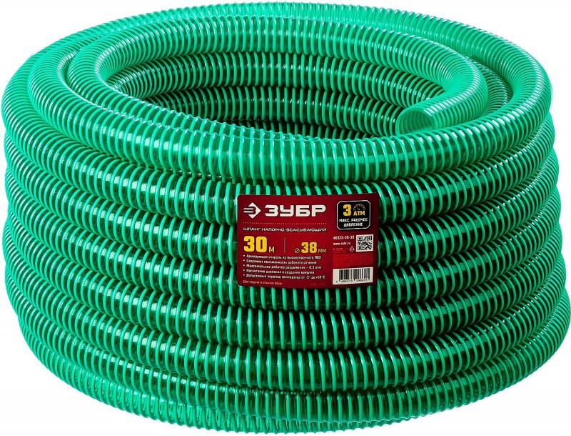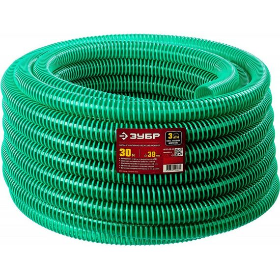 Шланг напорно-всасывающий со спиралью ПВХ Зубр 38мм х 30м 3 атм [40325-38-30]