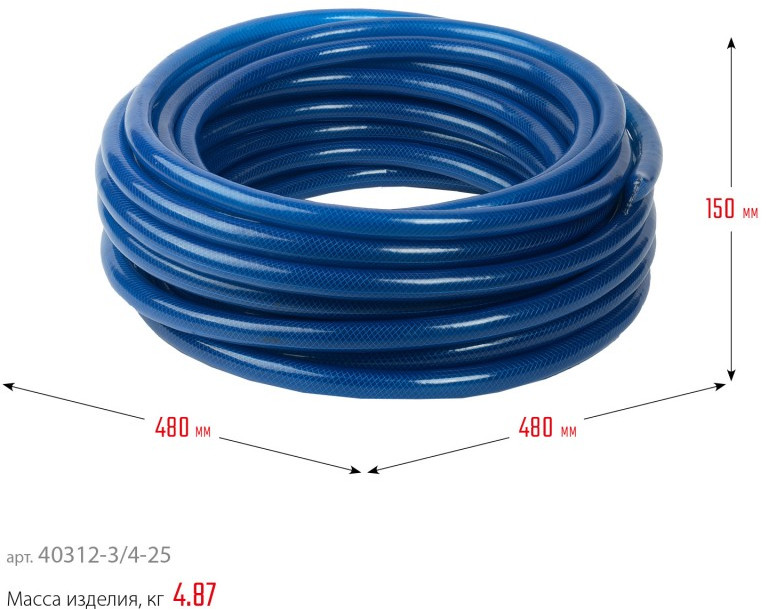 Поливочный шланг Зубр Профессионал 3/4" 25 м 22 атм, трёхслойный, армированный [40312-3/4-25]