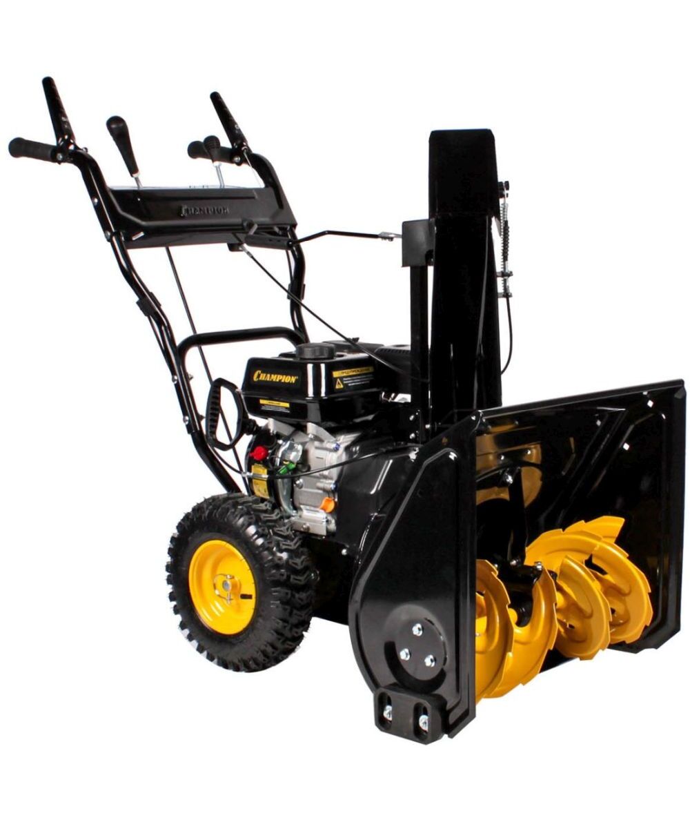 Снегоотбрасыватель CHAMPION ST661. Благодаря двухступенчатой системе шнеков, дальность выброса снега достигает 11 метров. Прочный металлический сплав позволяет шнеку обрабатывать снег любой сложности. Благодаря увеличенному объему топливного бака, можно работать непрерывно длительное время.