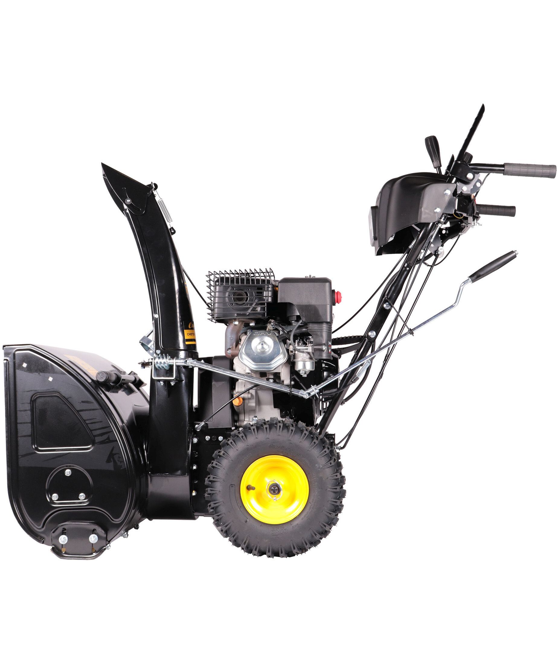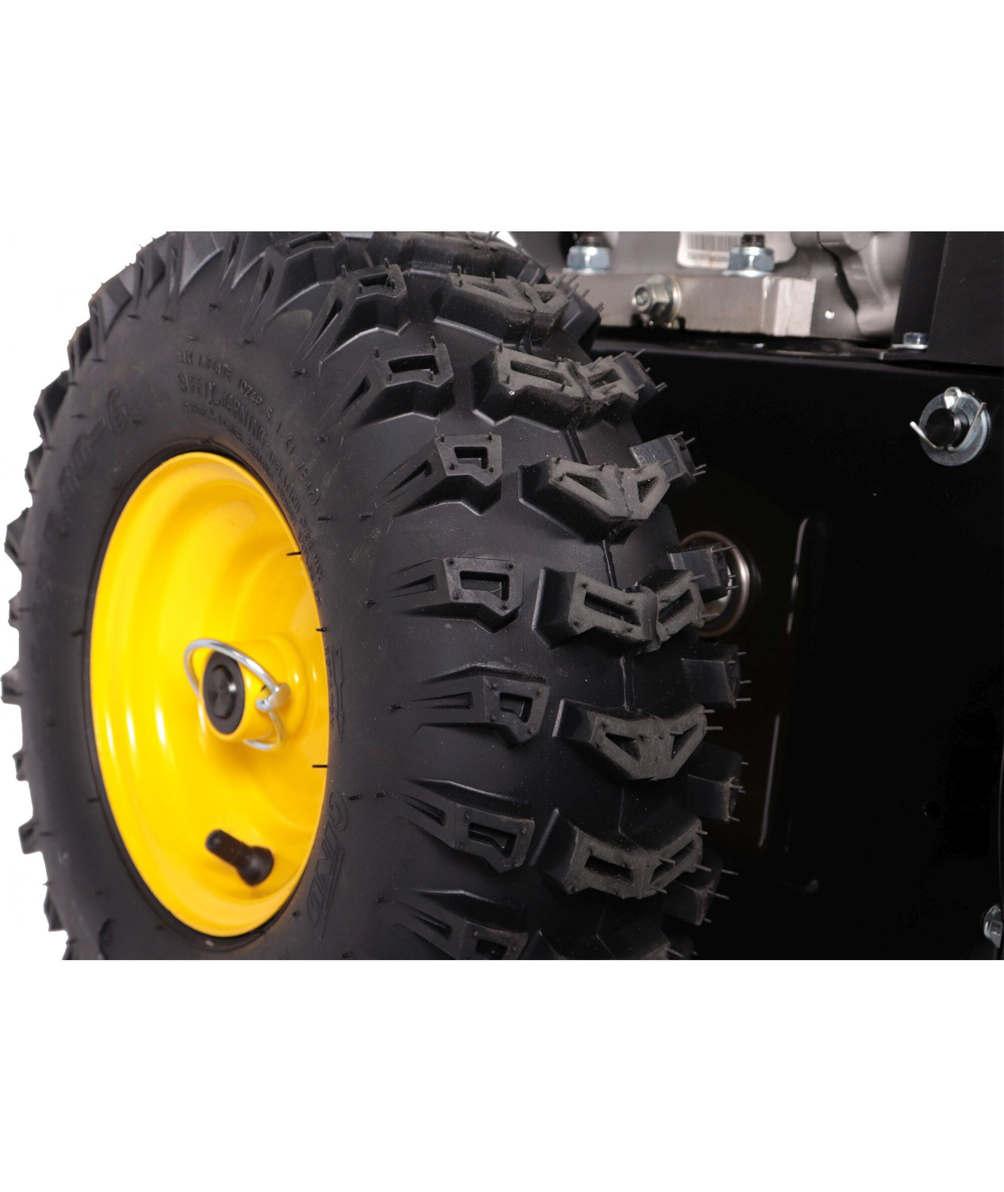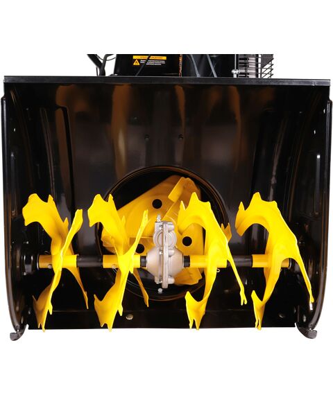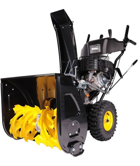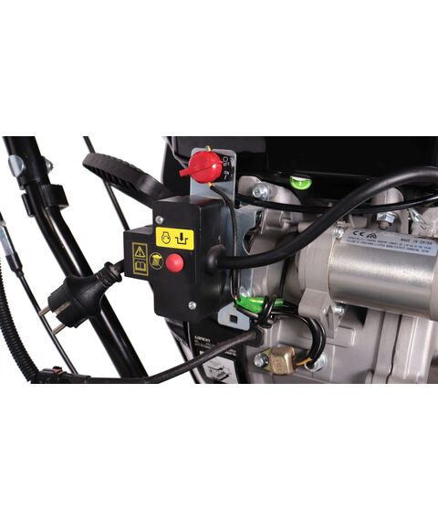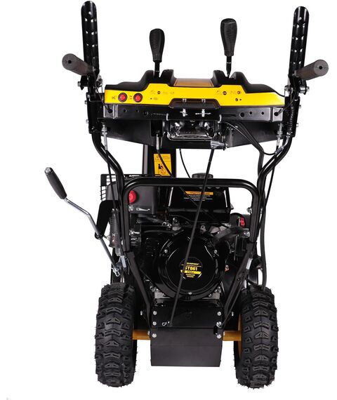 | Особенности | Электростартер, фара, обогрев рукояток. Обрезиненные рукоятки, блокировка рычага включения шнеков. Регулировка положения выброса снега и положения желоба производится на панели. |