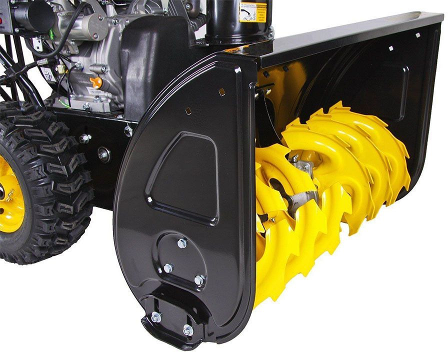 | Особенности | Самоходная модельХромовое покрытие поршневой группыСрезаемые шплинты для защиты рабочих органовПрочные металлические лопасти шнекаРегулировка направления выброса снегаФара для работы в темное время сутокЗащита ковшаНадежное сцепление колес с поверхностьюЭлектростартер |