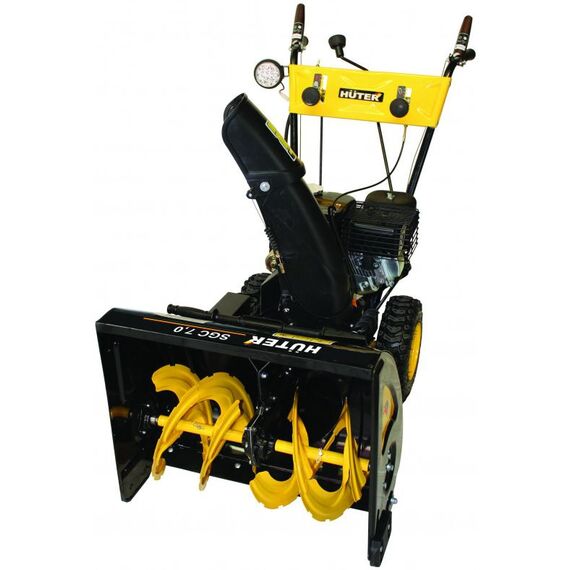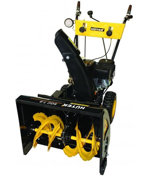 Бензиновый снегоуборщик Huter SGC 7,0 предназначен для расчистки небольших территорий от снега. Шнек с зубцами измельчает плотный снег. Благодаря глубокому протектору колеса не скользят при гололеде, обеспечивая хорошую проходимость машины. Поворот желоба регулируется специальным рычагом.