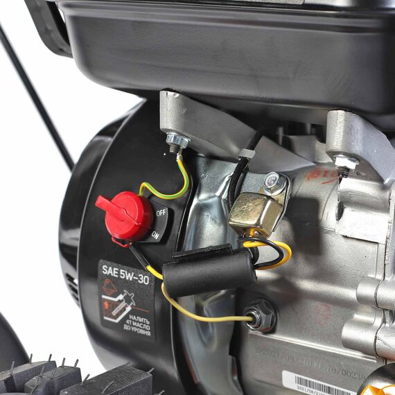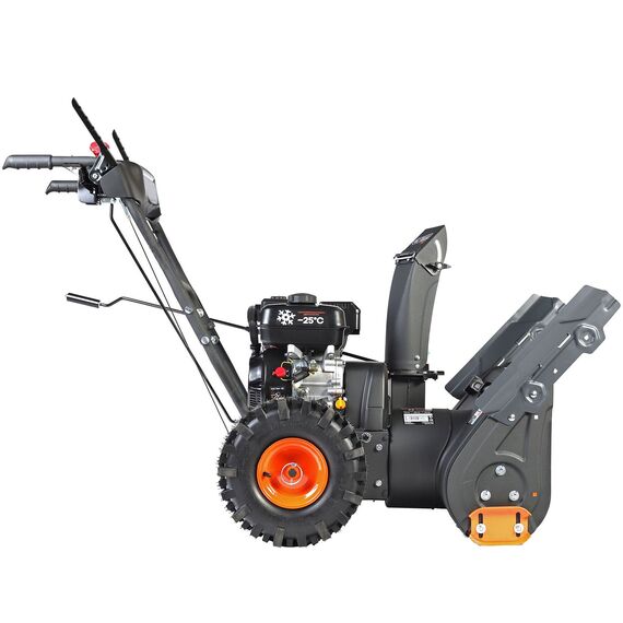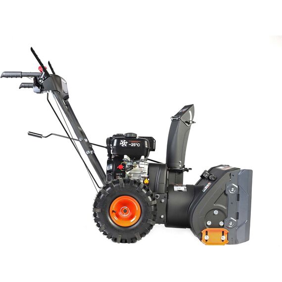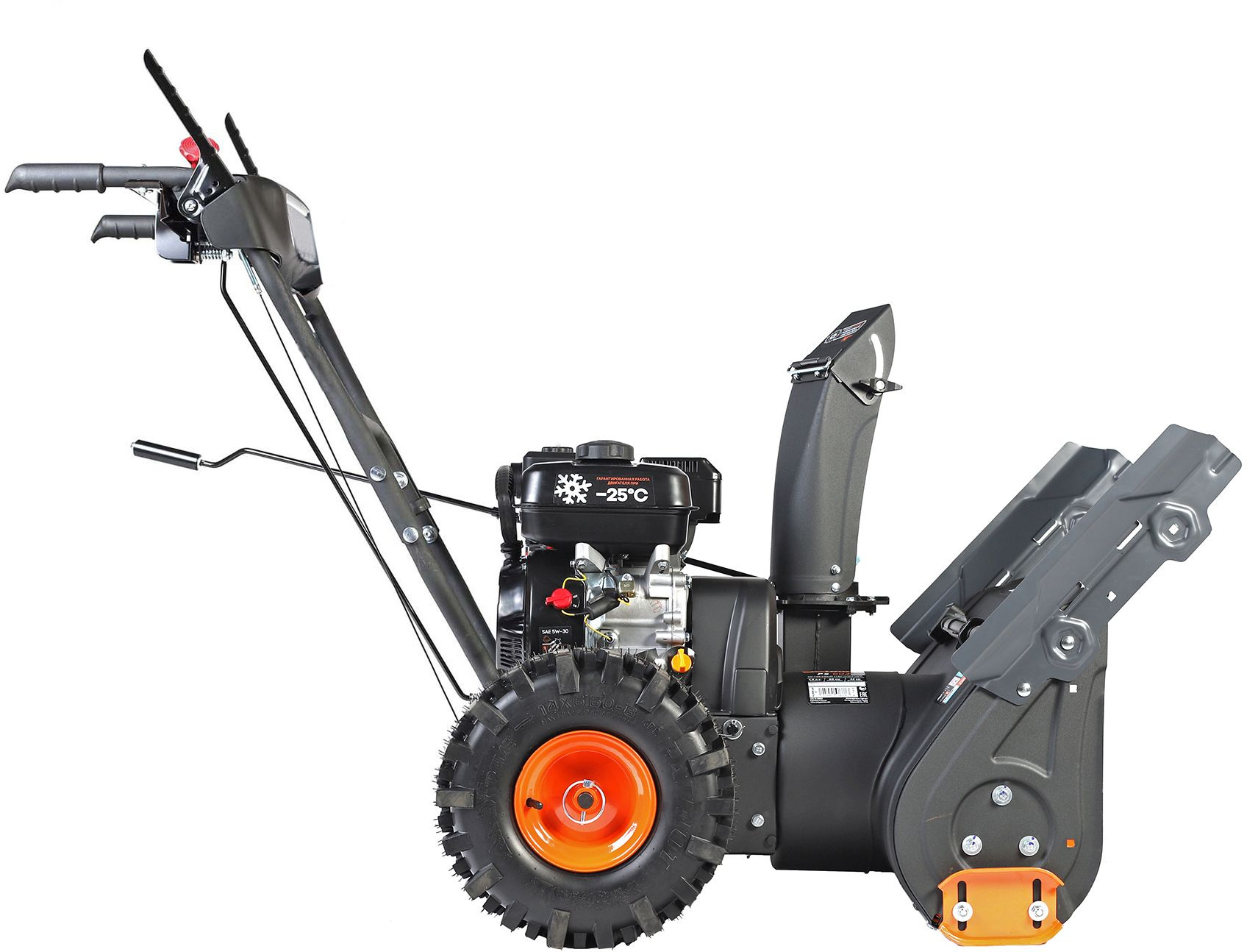 Средний самоходный бензиновый снегоуборщик, имеющий все качества больших агрегатов. В конструкции снегоуборщика используются только подшипники, а не втулки. Шестерня редуктора шнека выполнена из бронзы, что в десятки раз увеличивает ресурс снегоуборщика. Размер колес - 14х5,5-6