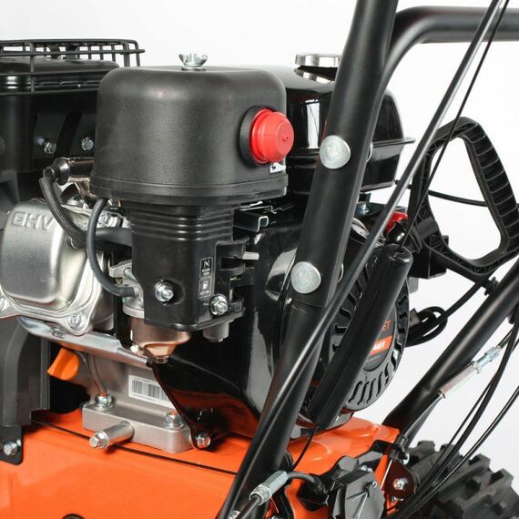 | Особенности | Мощный двигатель 7,8 л.с., фара и электростартер, а гусеницы обеспечивают максимальное сцепление с заснеженным грунтом и исключают скольжение, а легкость разворота обеспечивается блокировкой дифференциала. В конструкции снегоуборщика используются только подшипники, а не втулки. |