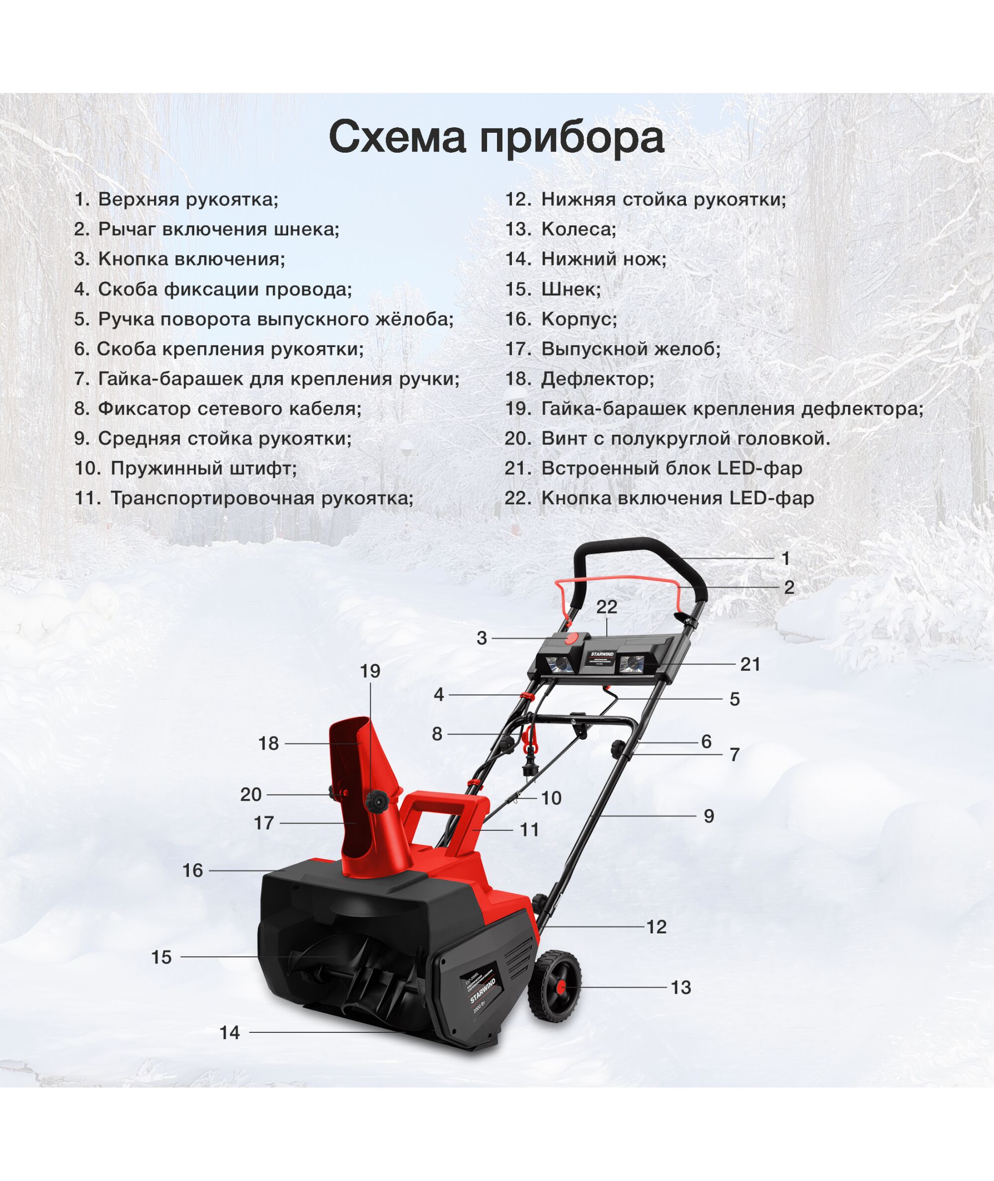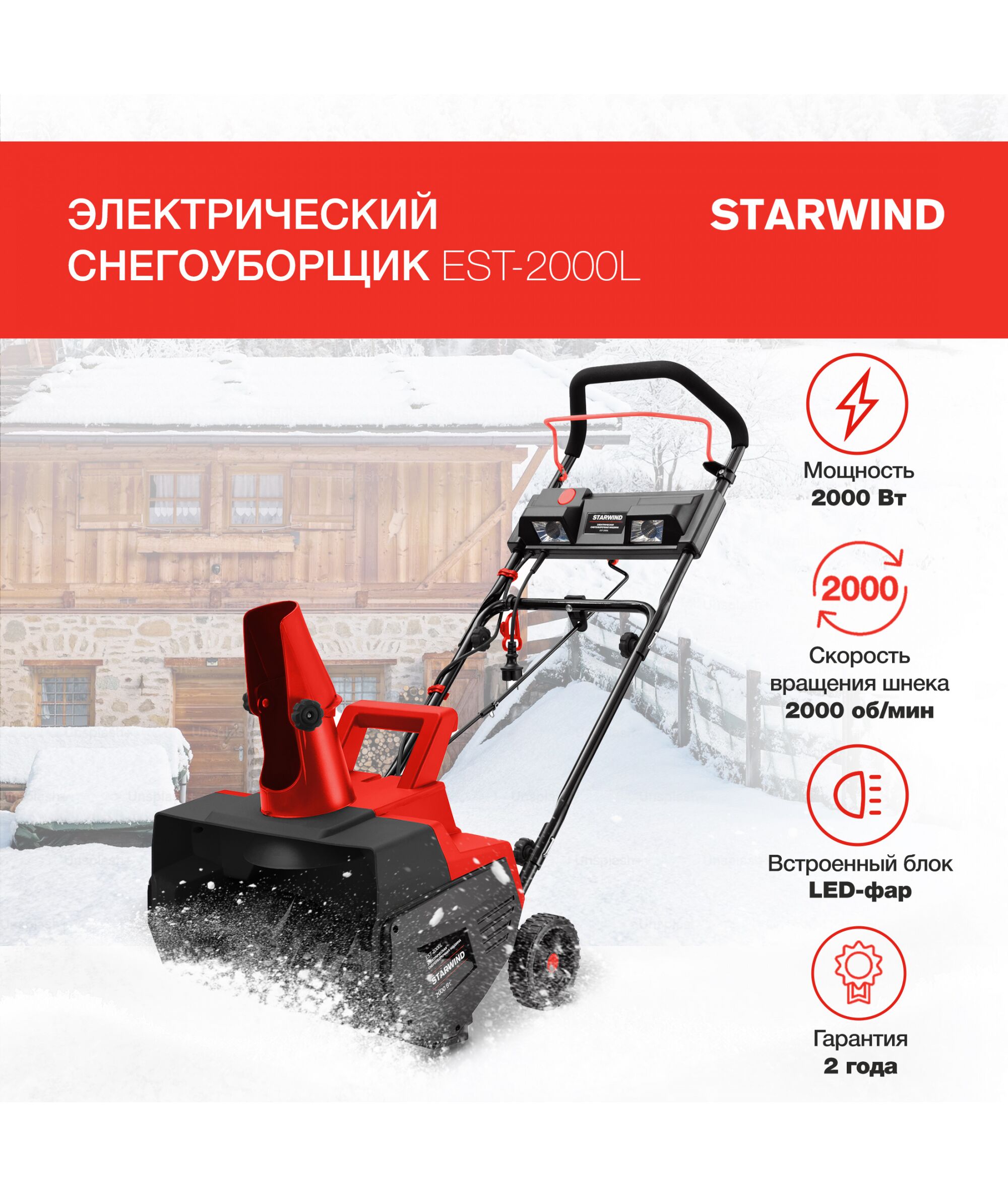 Снегоуборщик электрический STARWIND EST-2000L 2кВт