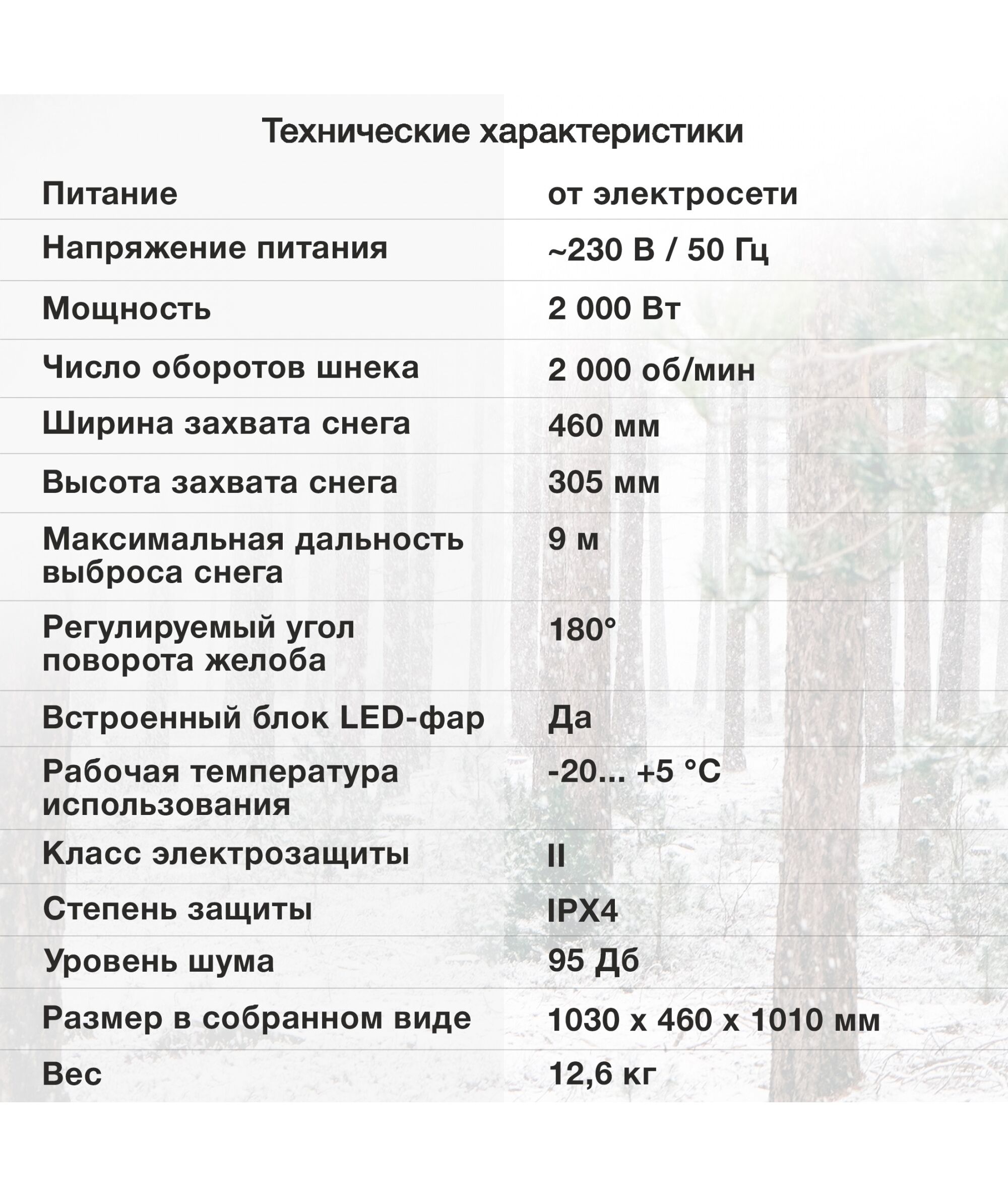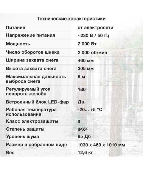 | Дальность выброса снега | 9 м |