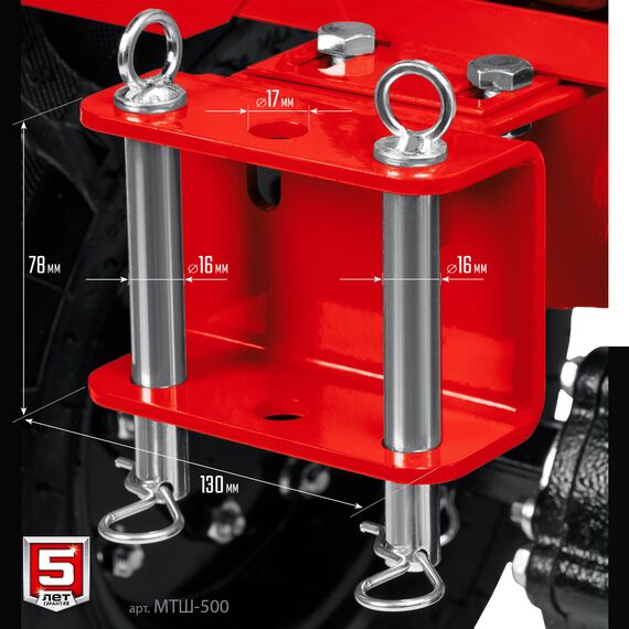 - Универсальная сцепка позволяет использовать различное навесное оборудование