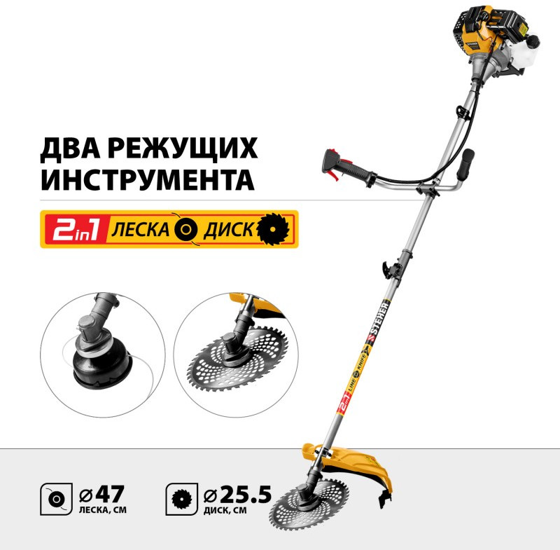 - Ширина скашивания леской/ножом, см: 47/25.5