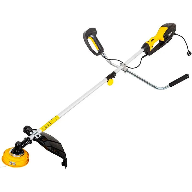 Устройство оснащено электродвигателем мощностью 2000 Вт, обеспечивающим высокую производительность и качественный результат. Частота вращения режущего элемента достигает 8000 об/мин, что позволяет эффективно справляться с густой и жесткой растительностью. Верхнее расположение двигателя способствует равномерному распределению веса, повышая комфорт при эксплуатации.