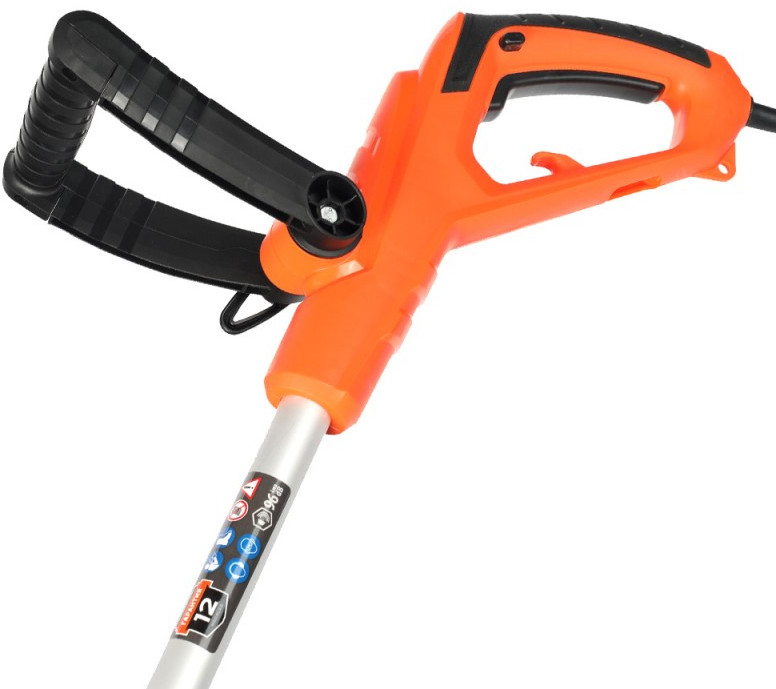 - Триммер отличается особенной легкостью и комфортом работы за счет нижнего сбалансированного расположения двигателя. Все элементы управления встроены в эргономичную рукоятку.