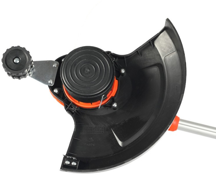 - Регулировка угла наклона двигателя. На триммере используется катушка с леской DL1220.