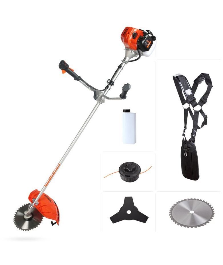 | Комплект поставки | Двигатель в сборе с рукояткой, трансмиссионный узел в сборе, рукоятка, защитный кожух с крепежной планкой, набор креплений для сборки, ЗИП комплект для установки триммерного ножа, емкость для приготовления топливной смеси, триммерная катушка, ножи 40Т и 3Т, ранцевый ремень, инструкция. |