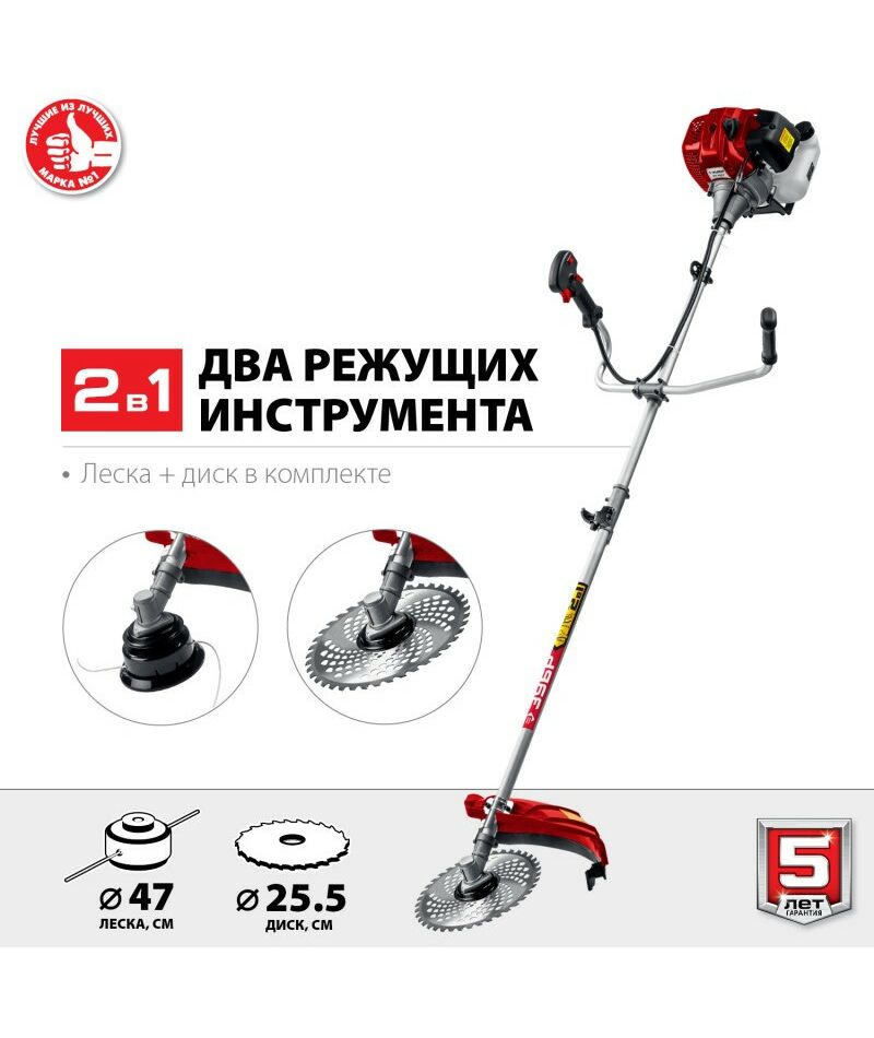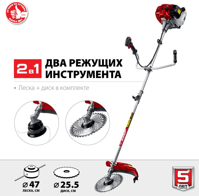 - Ширина скашивания леской/ножом, см: 47/25.5