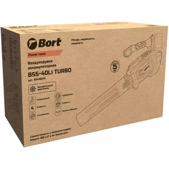 Воздуходувка Bort BSS-40LI Turbo пит.: от аккум. синий [93418576]