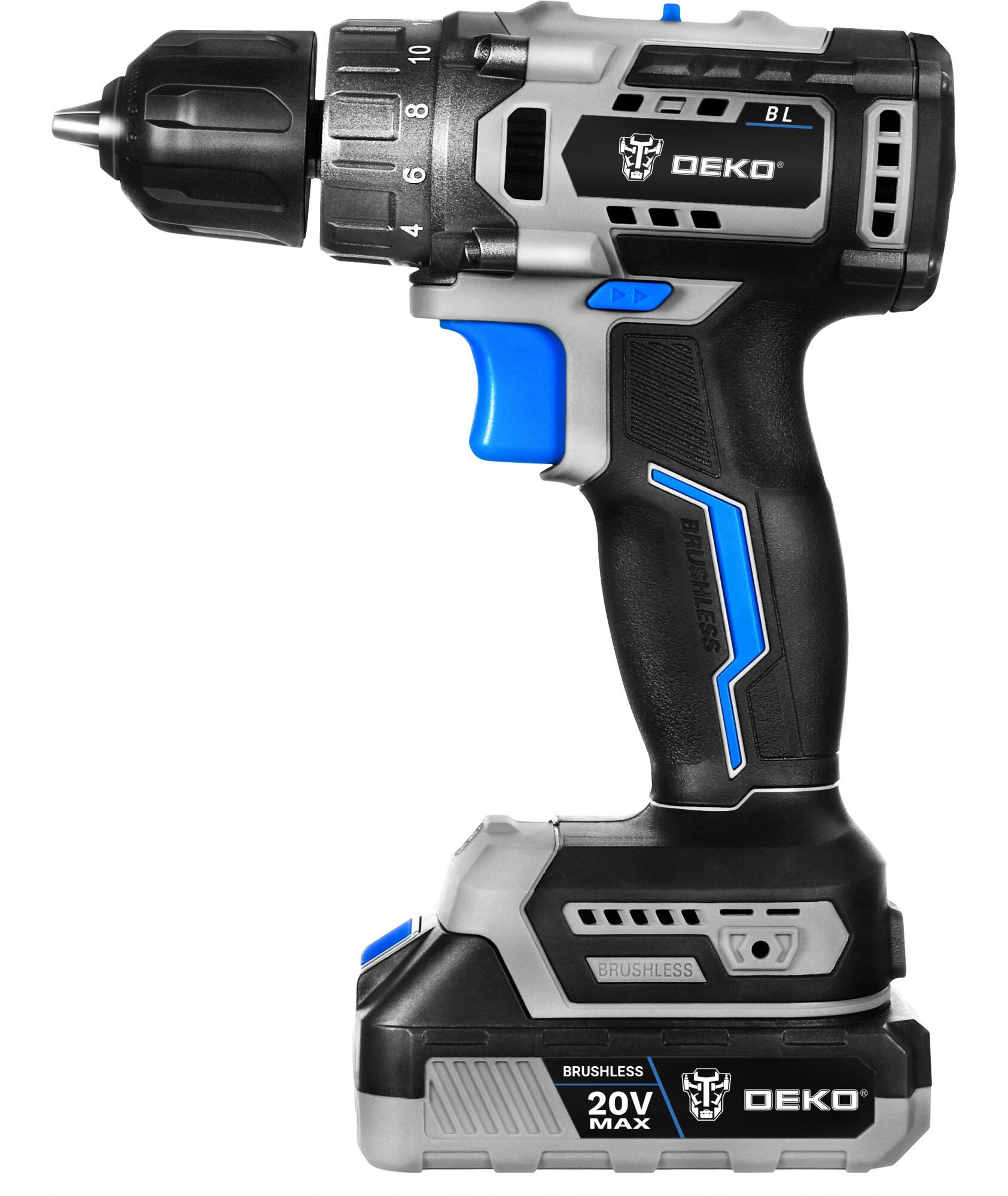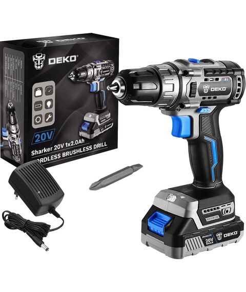 | Комплект поставки | Дрель-шуруповерт DEKO Sharker 20V, аккумулятор, зарядное устройство, бита. |