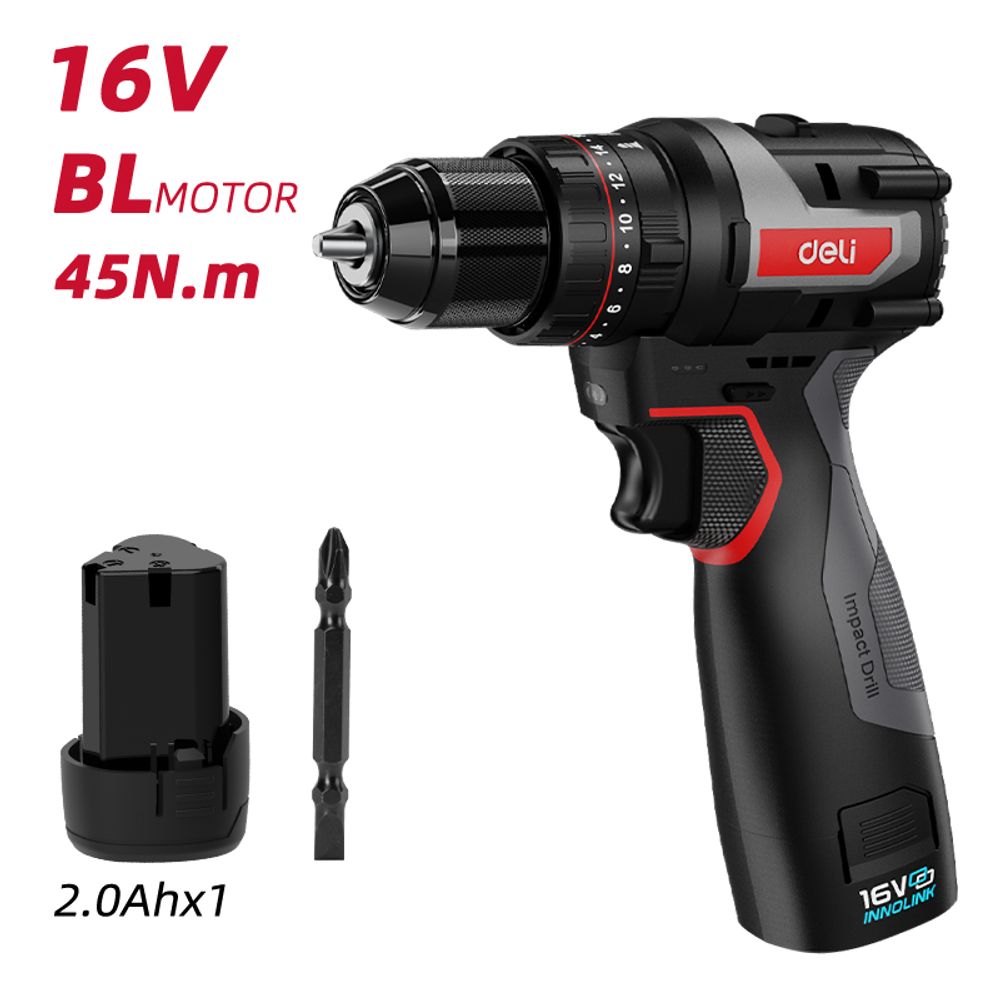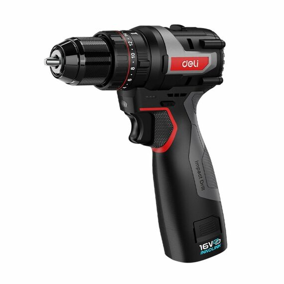 Дрель-шуруповерт аккумуляторная ударная Deli DE-CZ16-1A2 1 АКБ*2Ач, ЗУ, 16В, 45Нм, сумка