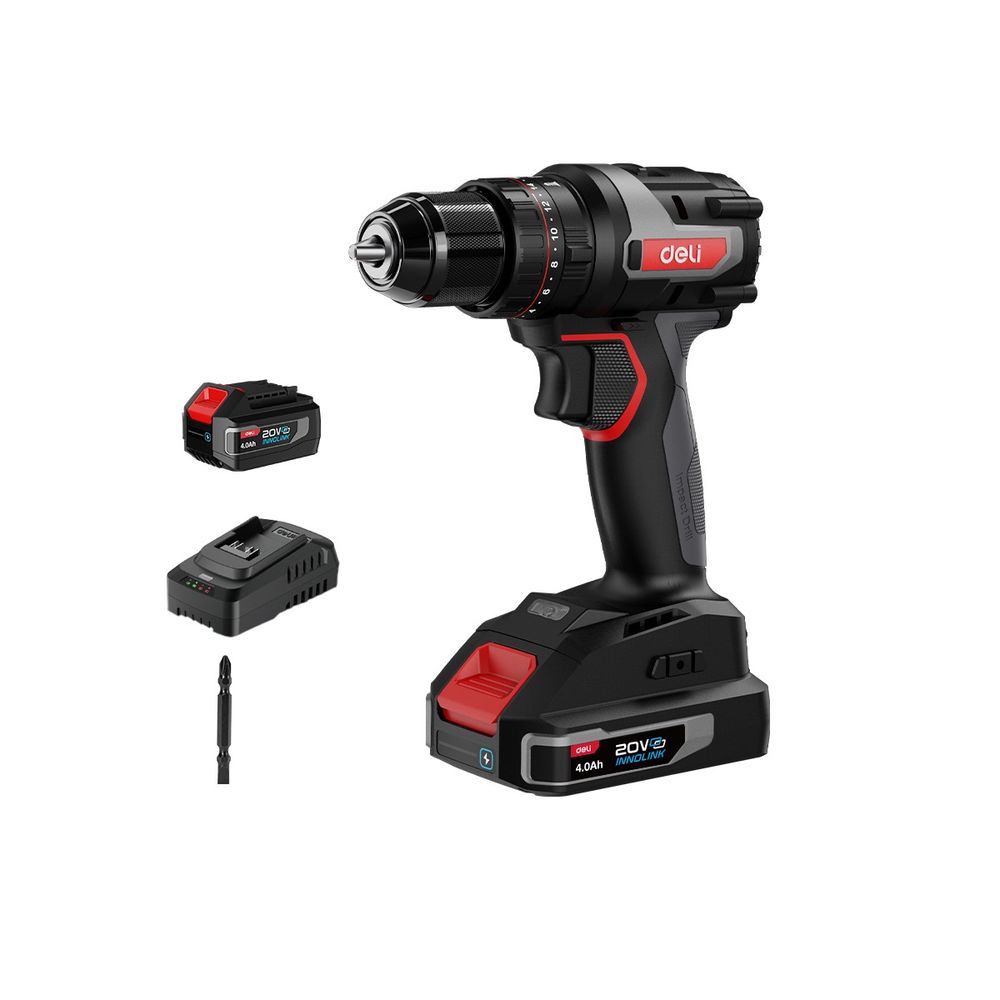 Дрель-шуруповерт аккумуляторная ударная Deli DE-CZ20-2A4 1 АКБ*4Ач+ЗУ, 20В, 10мм, 50Нм, сумка
