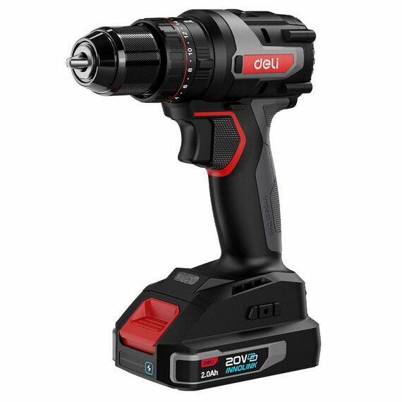 Дрель-шуруповерт аккумуляторная ударная Deli DE-CZ20-2D2 20В, патрон 10мм, крутящий момент 50Нм, в комплекте 2 АКБ 2Ач, зарядное устройство, сумка
