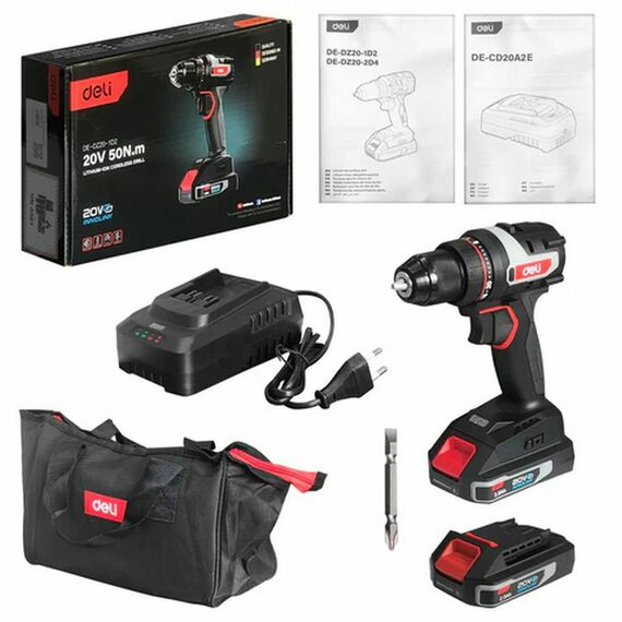 Дрель-шуруповерт аккумуляторная Deli DE-DZ20-1D2 2 АКБ*2Ач, ЗУ, 20В, 10мм, 50Нм, сумка