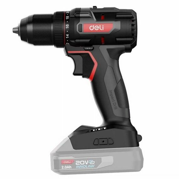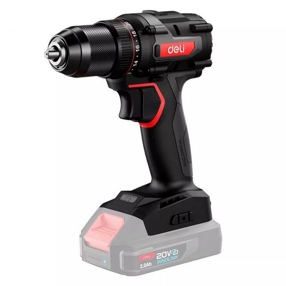 Дрель-шуруповерт аккумуляторная Deli DE-DZ20-2 Без АКБ и ЗУ, 20В, 13мм, 70Нм, картон