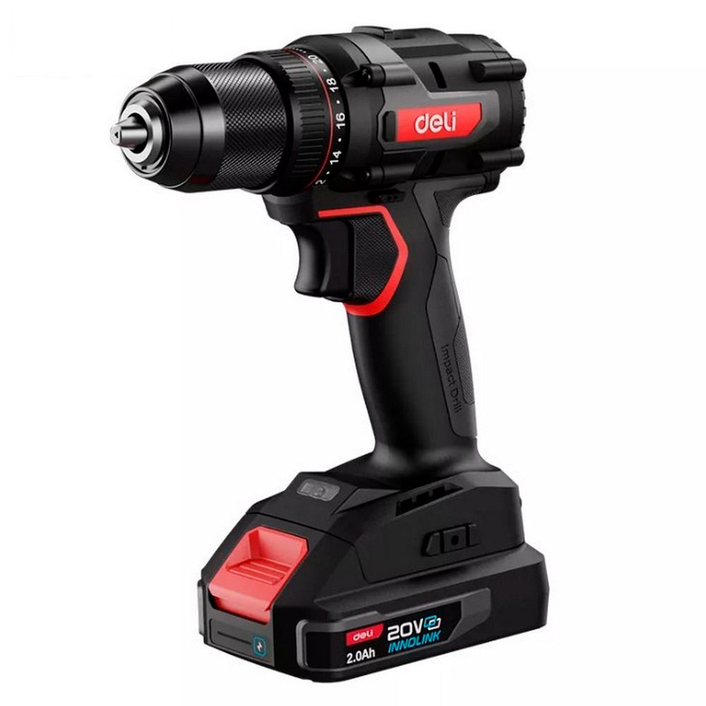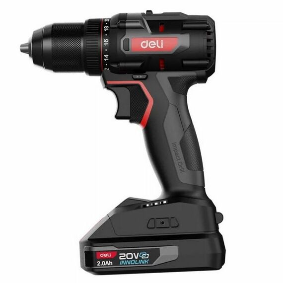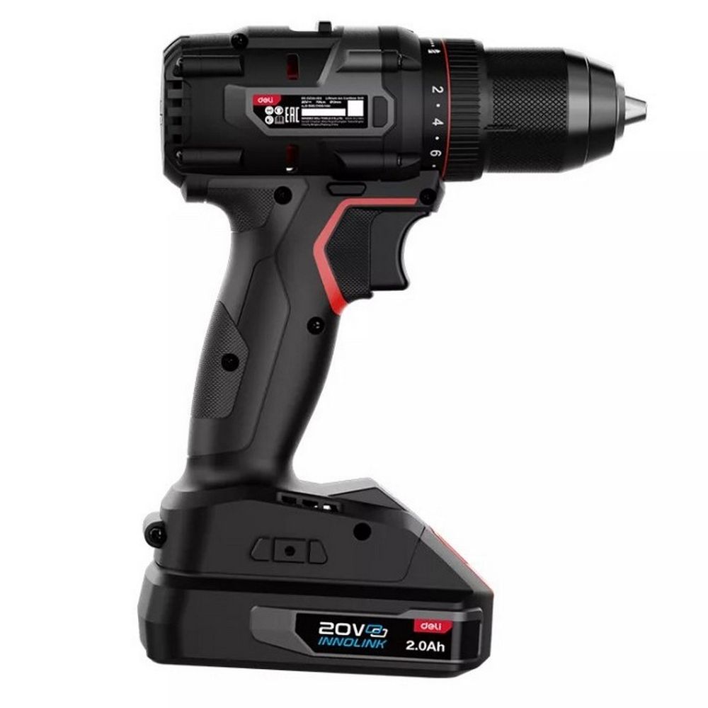 Дрель-шуруповерт аккумуляторная Deli DE-DZ20-2D2 20В, 13мм, 70Нм, 2 АКБ*2Ач, зарядное устройство, сумка