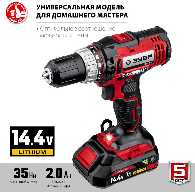 - Универсальный шуруповерт для сверления и заворачивания благодаря двухскоростному редуктору. Значительный крутящий момент позволяет использовать его для широкого спектра крепежа вплоть до 6 мм. Два аккумулятора в комплекте помогают работать практически без перерывов