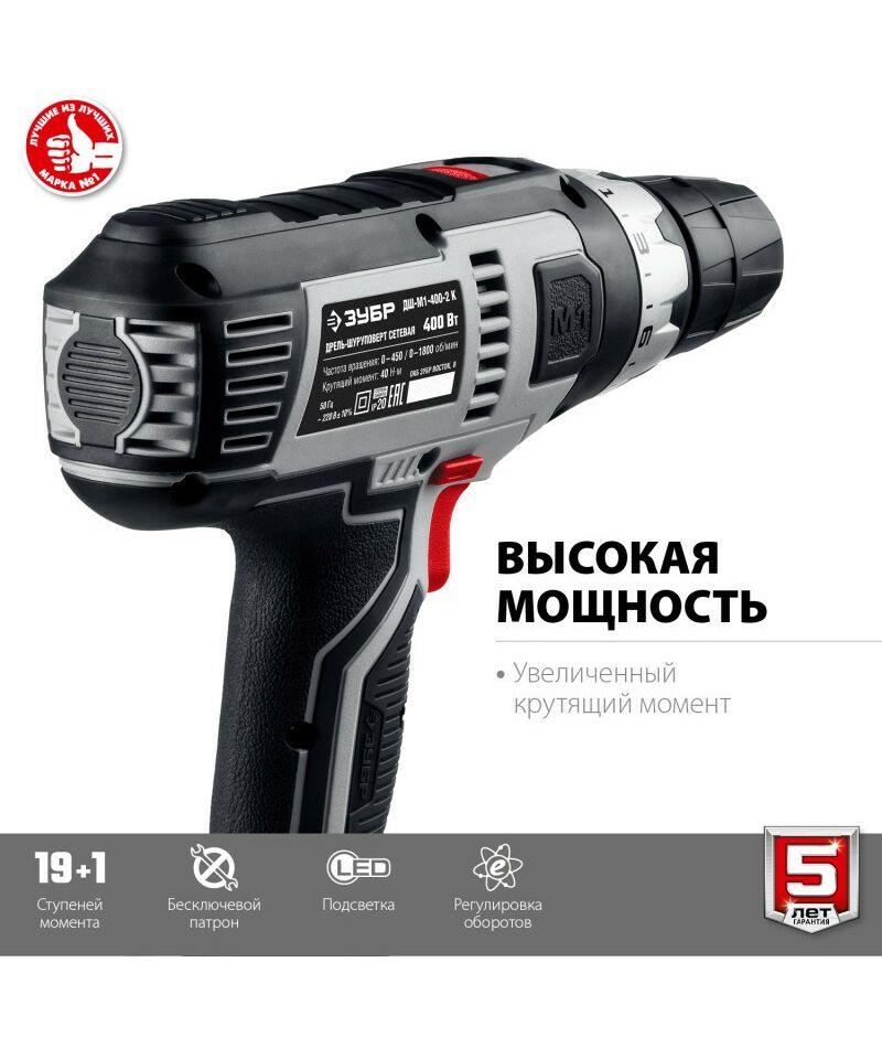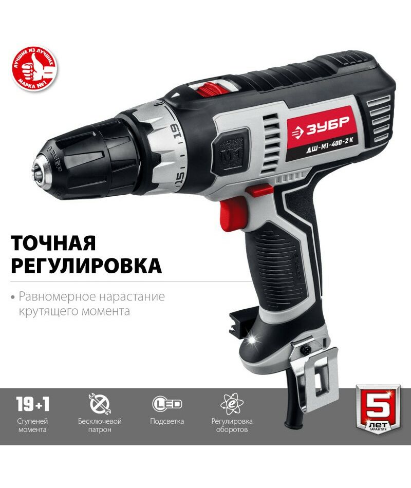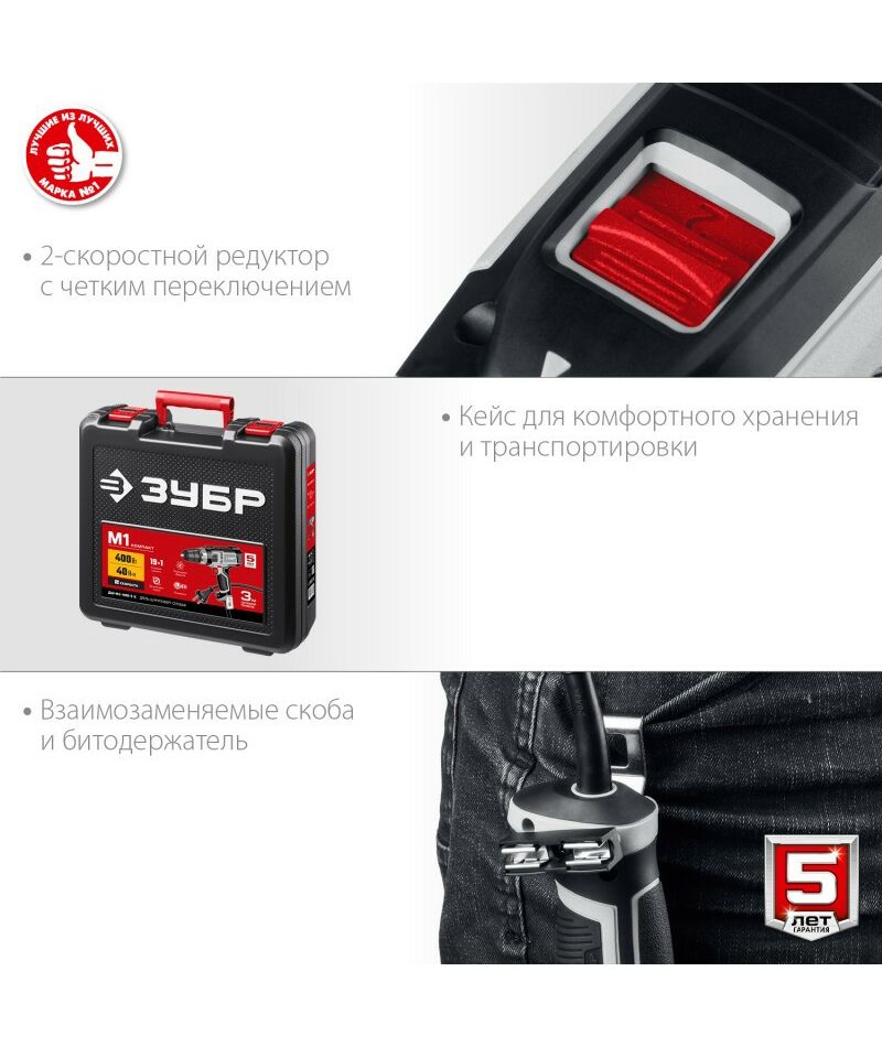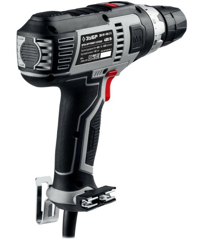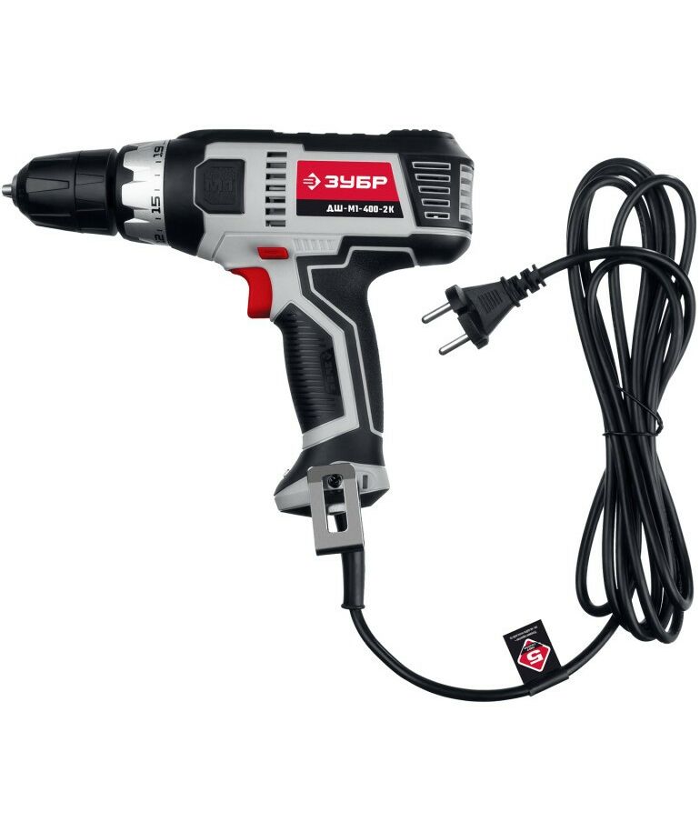Дрель-шуруповерт сетевая Зубр Мастер ДШ-М1-400-2 К 400 Вт, 0-450/0-1800 об/мин, в кейсе
