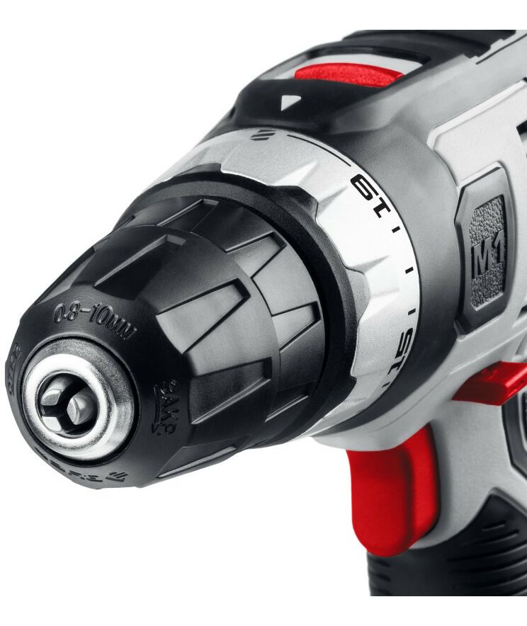 - Двухскоростной редуктор обеспечивает как большой момент для заворачивания крепежа, так и значительную частоту вращения для сверления