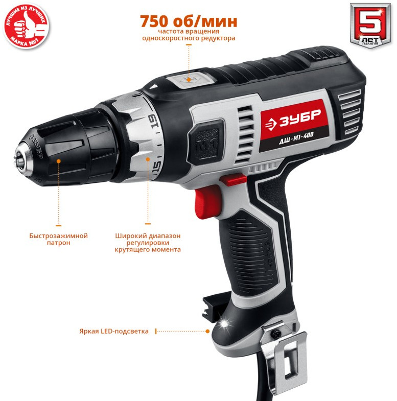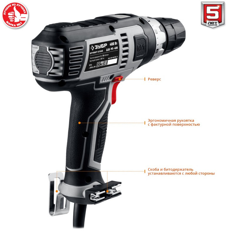 Дрель-шуруповерт сетевая Зубр Мастер ДШ-М1-400 400 Вт, 0-750 об/мин