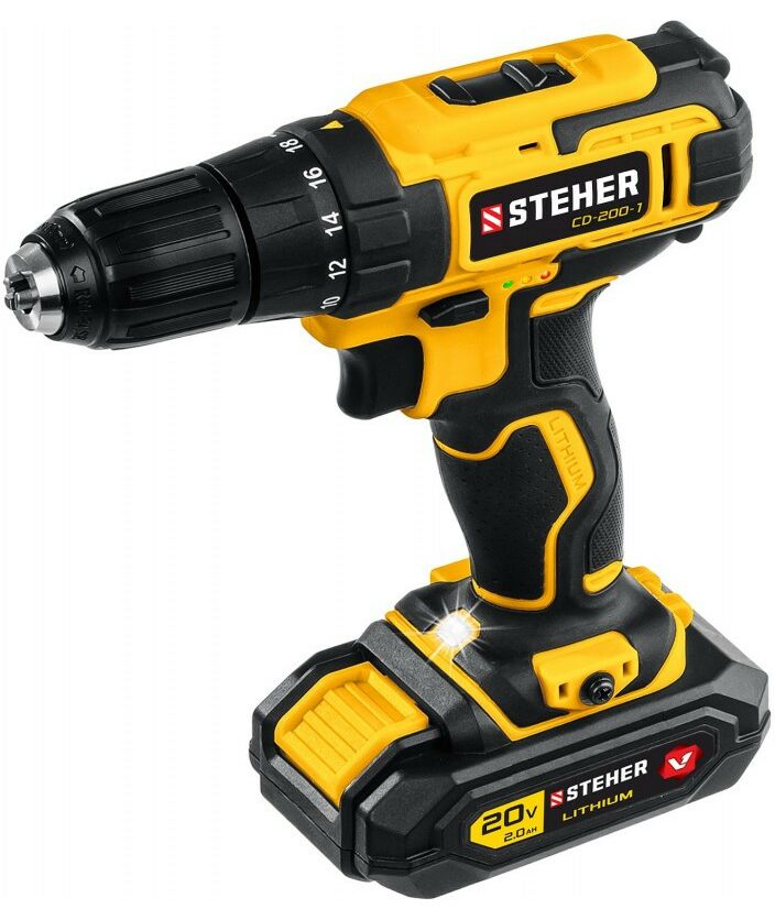 Дрель-шуруповерт STEHER CD-200-1 20В, 1 АКБ (2Ач), в кейсе