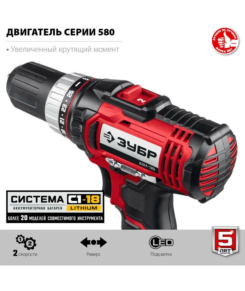 Дрель-шуруповерт Зубр ДШЛ-185 18В, без АКБ, в коробке