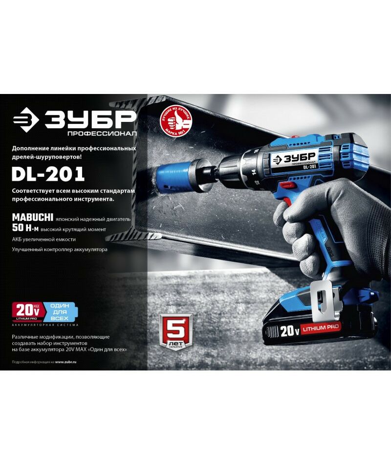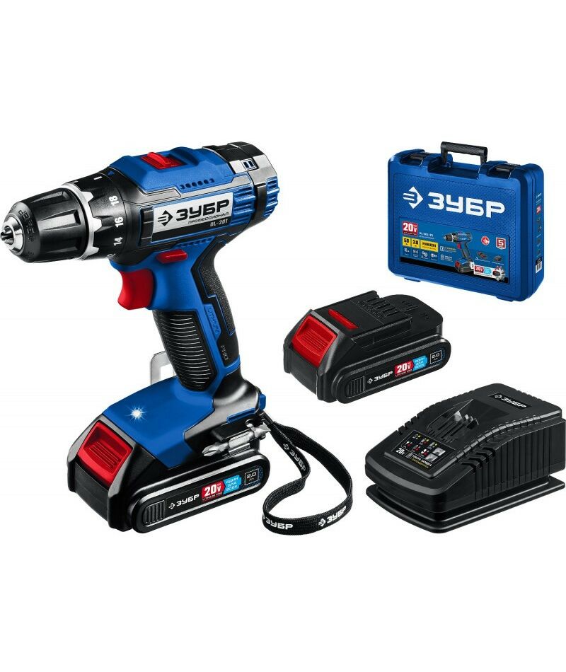 Дрель-шуруповерт Зубр Профессионал DL-201-22 20В, 2 АКБ (2Ач), в кейсе