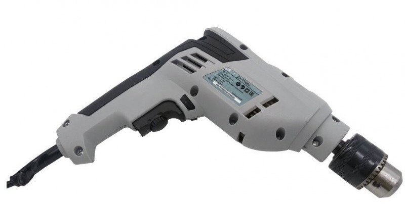 - Рукоятка имеет мягкую накладку и упор в нижней части для надежного захвата дрели во время работы