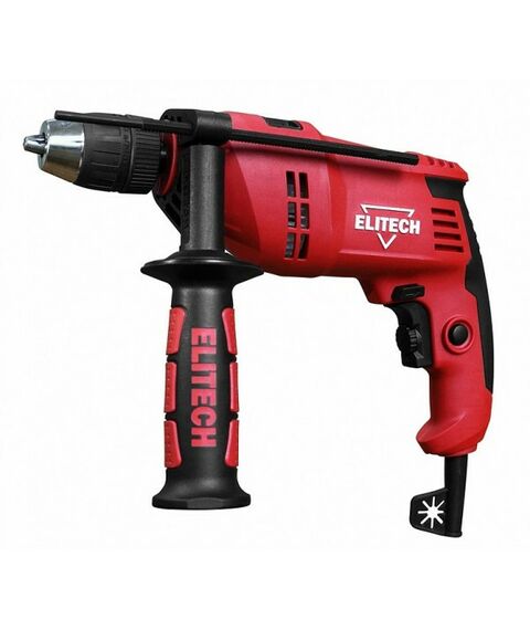 Дрель ударная Elitech ДУ 650РЭК мощностью 650 Вт. Работает от сети. Предусмотрена функция ограничения сверления.